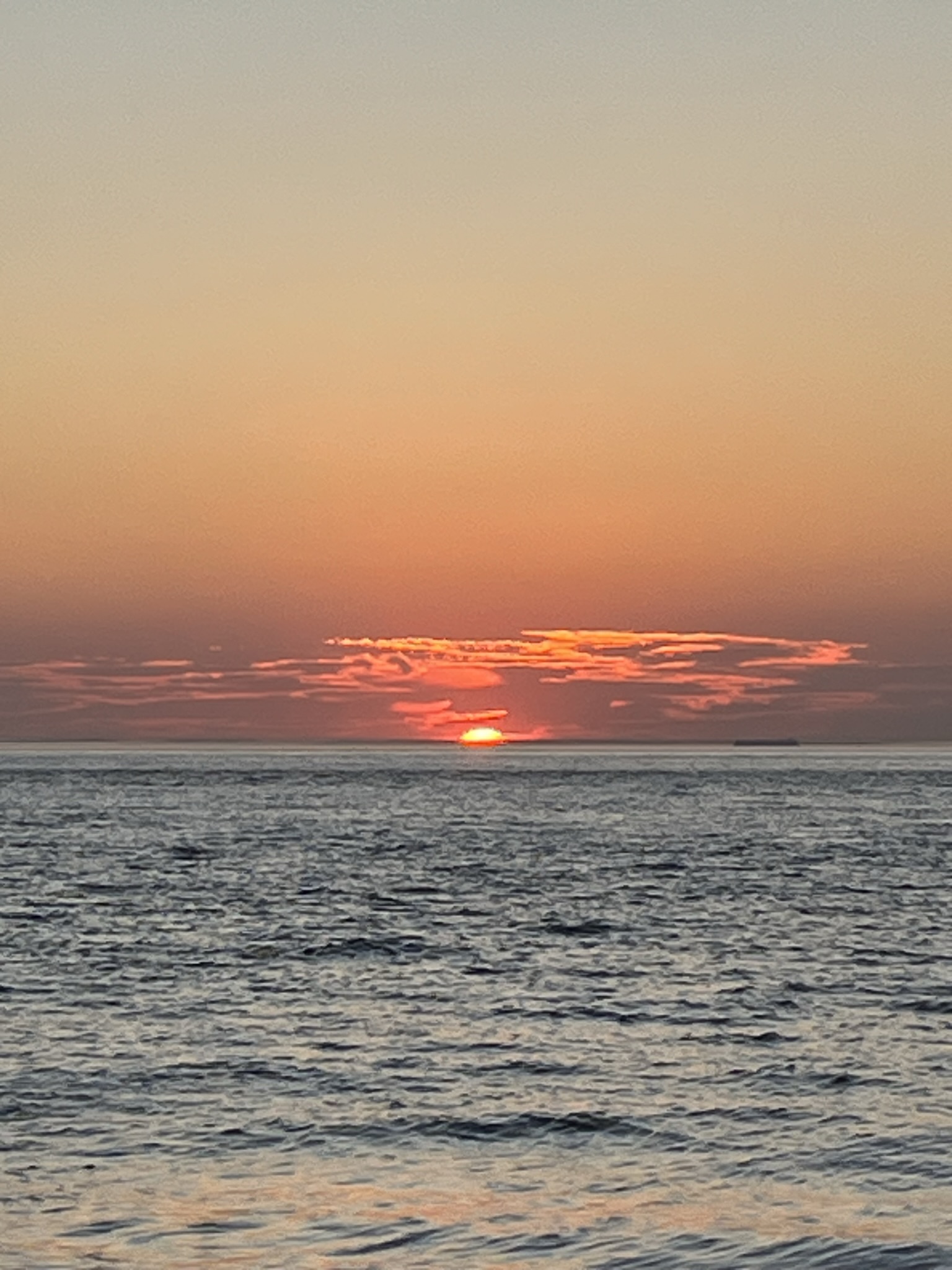 Looking out towards the ocean, you see the sun drop just below the horizon. On this day, it was a magnificent orange – red, and the clouds in the sky took on the same hue. It was spectacular and when the sun set, the crowd cheered. They clapped.